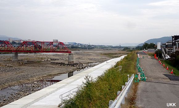 | と言う訳で、この日は工事は行われていませんが、新しい堤防が既に完成していました。 2020年10月4日 千曲川橋梁にて |