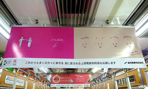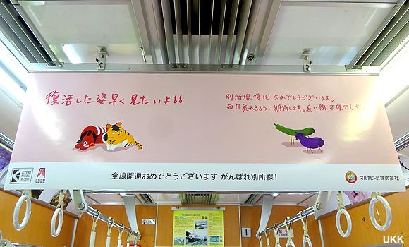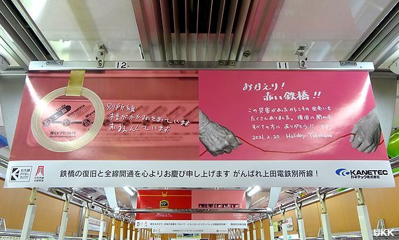 | 別所線車内に、全線復旧に際して様々な企業の広告が展開されていた為、この機会にまとめてみました。 2021年7月24日 別所温泉にて |
