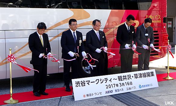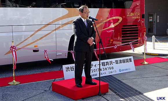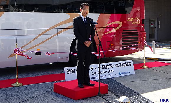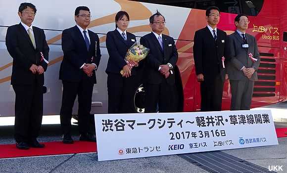 初の高速バス「渋谷マークシティ〜軽井沢・草津線」開業。 2017年3月16日(木)、上田バス史上初となる高速バス「渋谷マークシティ〜軽井沢・草津線」が開業しました。 このページでは、開業日である2017年3月16日(木)に渋谷マークシティで催された開業出発式の模様をお届けします。 |