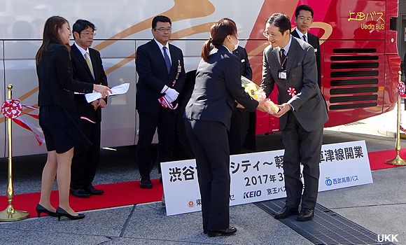 | 開業出発式は、上田バス初便(午前9時35分発)の出発に合わせ、午前9時10分頃より執り行われました。 I-171 渋谷マークシティにて 2017年3月16日 |