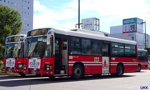 | 「シャトルバス」の表示入ってるんですね。 I-176 上田駅前にて 2018年9月16日 |