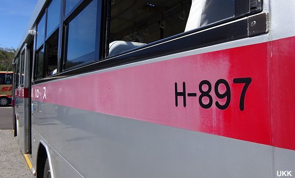 | ここからは、上田バスの展示車をご紹介。 まずは、今月末の引退が予定されている元東急バスのH-897。 H-897 上田営業所にて 2018年9月16日 |