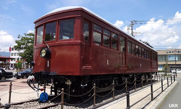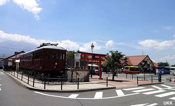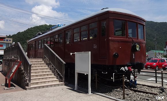 以前は、駅前に展示スペースはなく、河口湖駅の構内に留置されていた。 |