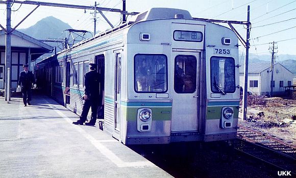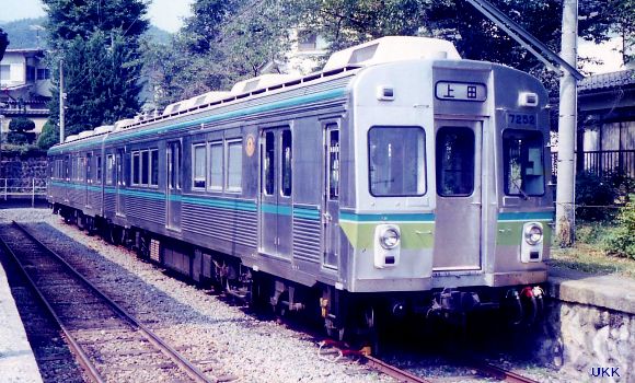 7200形が導入されてからも、しばらくは快速運転が継続されていたが 利用者数が延びず廃止に。(別所温泉にて) |