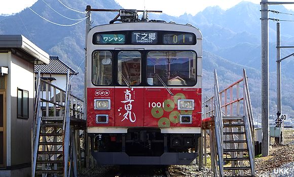 | 2016年2月22日より、1001編成は「真田丸」ラッピングに。 (2017年1月までの運行) 下之郷にて 2016年3月26日 |