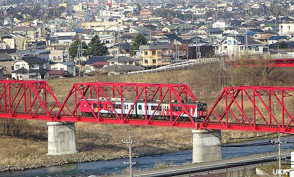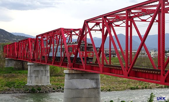 | 千曲川を渡る真田丸ラッピング。 上田-城下にて |
