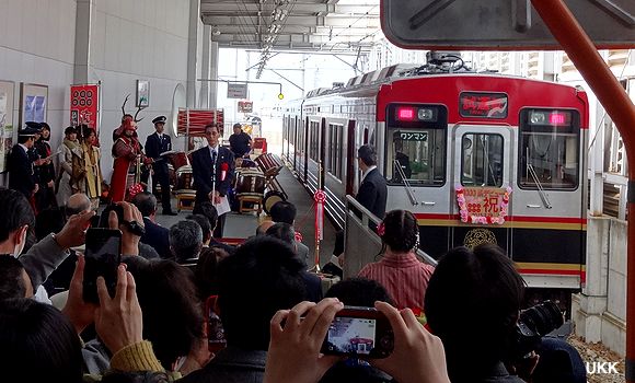 | 出発式当日の14時からは、下之郷で6000系の展示が行われた。 2015年3月28日 下之郷にて |