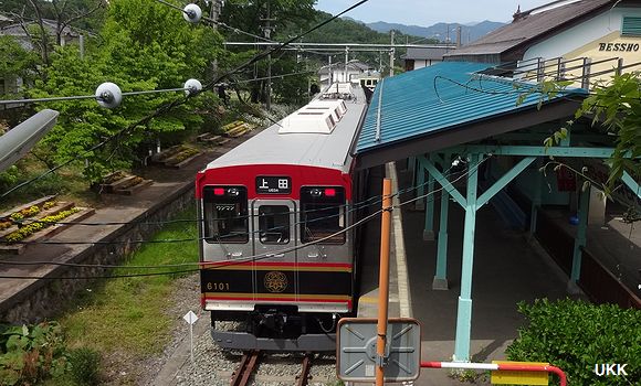 | 折り返し、上田行。 別所温泉にて 2015年5月22日 |