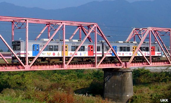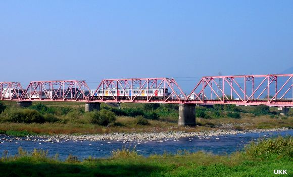千曲川鉄橋を渡る「自然と友だち1号」。 城下-上田にて 2008年10月18日 |