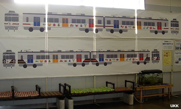 上田駅に掲出された、自然と友だち1号(上)と同2号(下)のデザイン画。 上田にて |