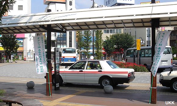 2009年10月1日付で上田タクシーに社名変更。 上田駅お城口にて 2009年10月1日 |