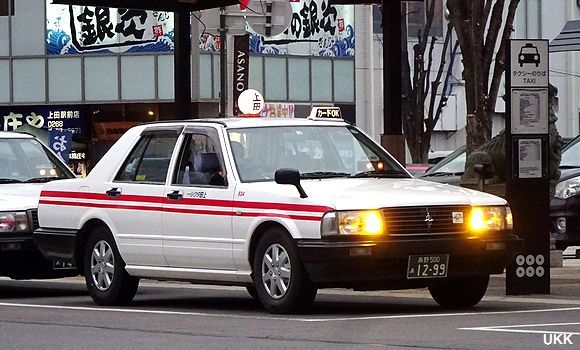 上田タクシーは、東信地区最大の車両数。 上田駅お城口にて 2010年2月12日 |