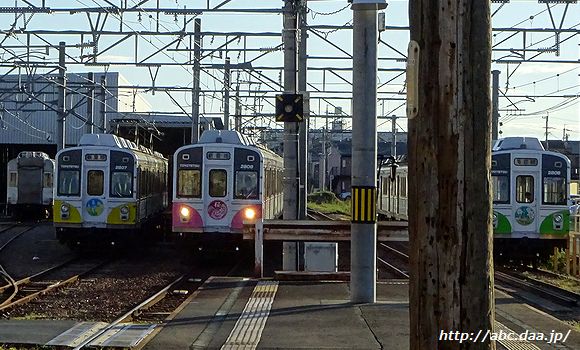 高師の車両区。3編成が休憩中。 2010年10月31日 |