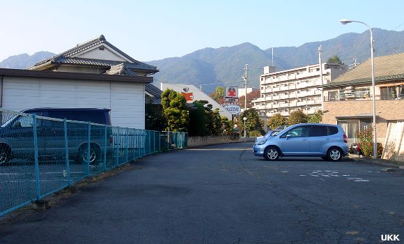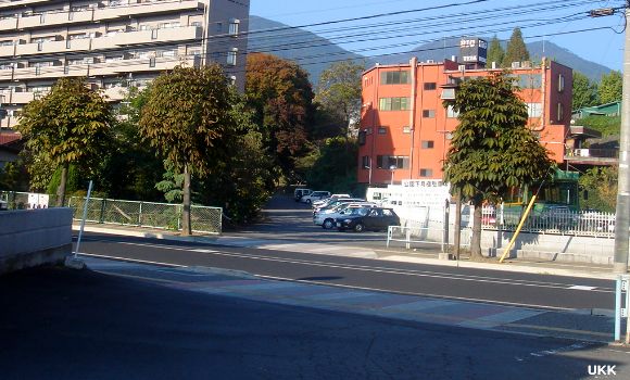 上田-公園前 そのままお堀へ直進する廃線跡、この辺りは全て上田交通の月極駐車場として廃線跡を辿る事が出来る。モータリゼーションの波に押されて廃線に追い込まれた鉄道跡が駐車場になり現在の上田交通の大きな収入源になっているとは皮肉である。 2007年10月24日 |