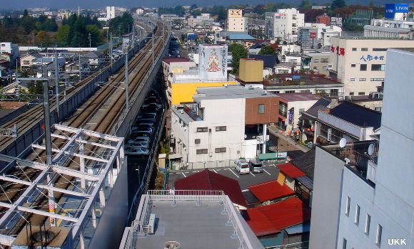 管理人が上田ステイに宿泊した際に最上階から真田傍陽線の線路跡を撮影。 2007年10月24日 |