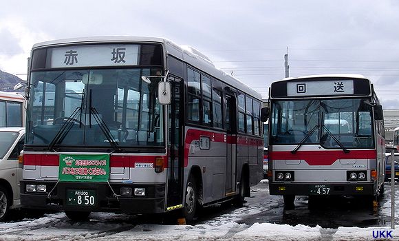 貸切車の新塗装車。 H-122・F-133 2013年5月17日 上田営業所にて |