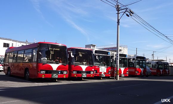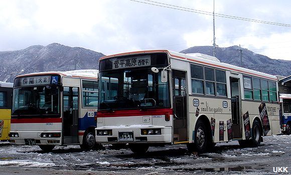 新塗装車が増えてきた。上田バス、上田営業所。 2014年3月15日 |