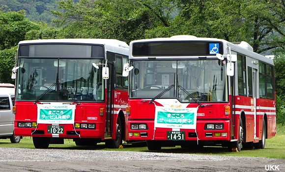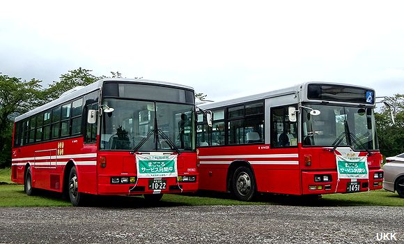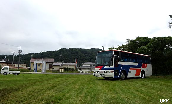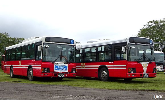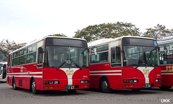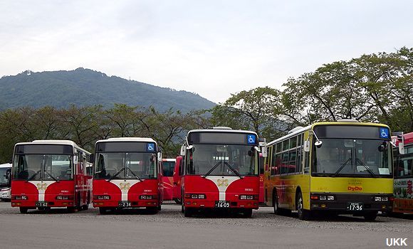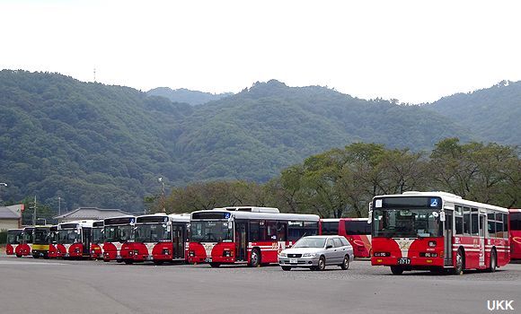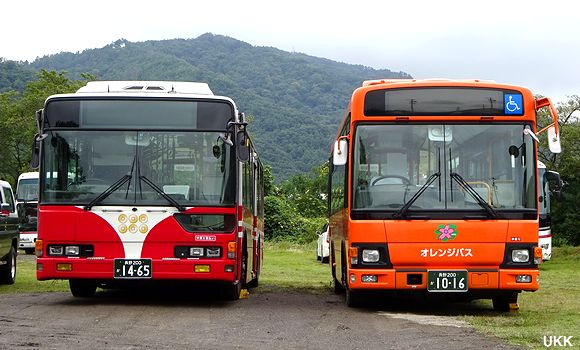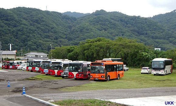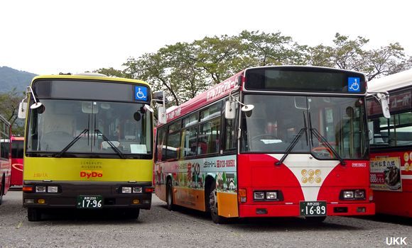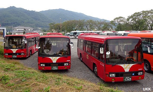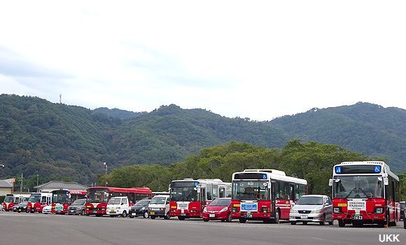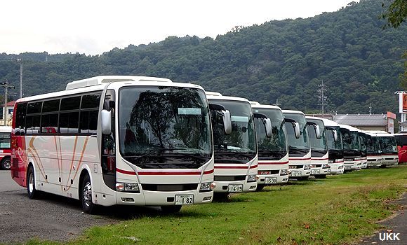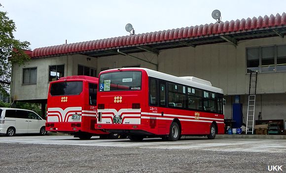 従来の上田営業所同様、手前に路線車が並び、奥に貸切車が並ぶスタイルとなっております。